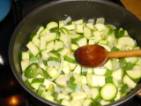 1 : Laver les courgettes, puis les couper en petits morceaux ainsi que l’oignon et l’ail.