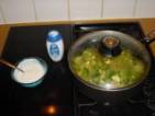 4 : Au moment de servir ajouter du sel et une gousse d’ail écrasée au yaourt et mélanger le tout.